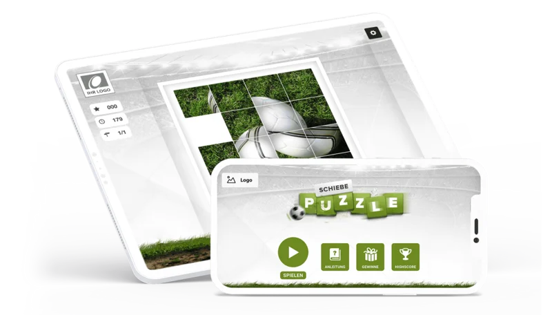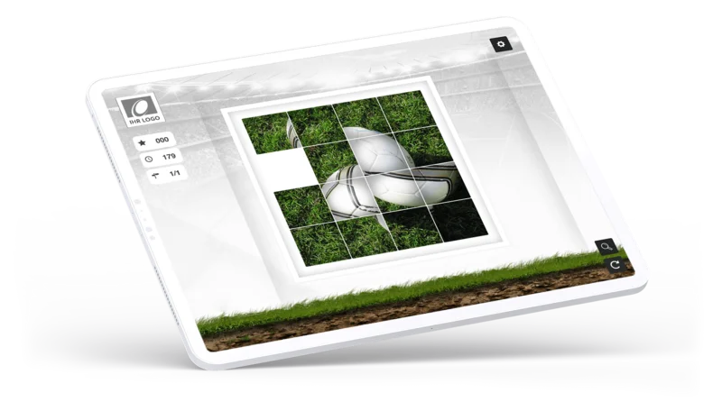 Sliding Puzzle Soccer is an HTML5 puzzle that can be played directly in the browser on smartphones, tablets and desktop devices. You can easily embed the game on websites, landing pages, in promotions or social media campaigns. Using your own images, colours or branding elements, the game can be customised to match your corporate design. This is how you make your football theme interactive and appealing to your target audience.