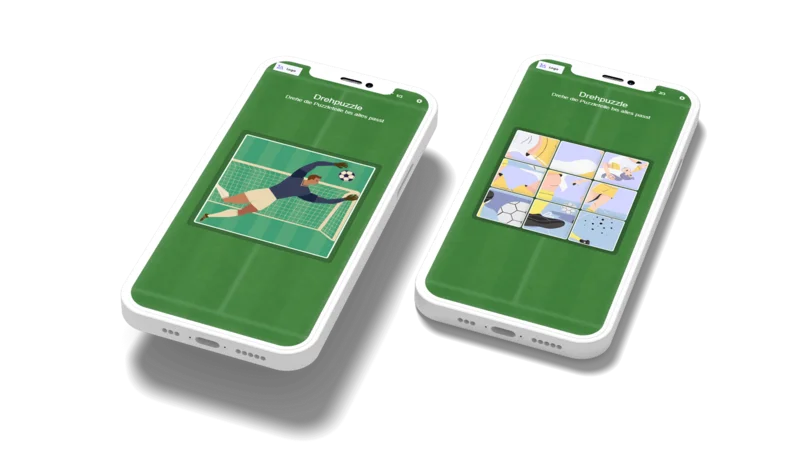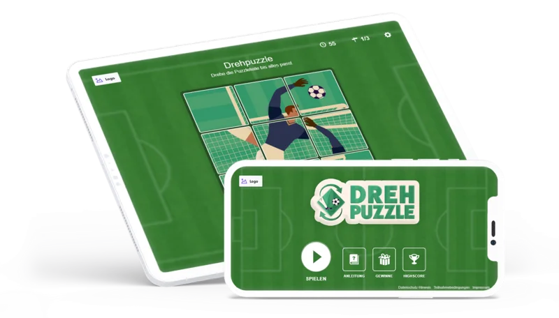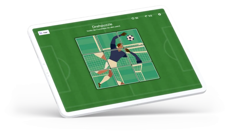 Drehpuzzle Fußball ist ein browserbasiertes HTML5-Spiel, das auf Smartphone, Tablet und Desktop gleichermaßen funktioniert. Du kannst das Spiel ganz unkompliziert auf deiner Webseite, Landingpage, im Rahmen von Aktionen oder Social-Media-Kampagnen integrieren. Mit eigenen Bildern, Farben oder Branding-Elementen lässt sich Drehpuzzle Fußball optimal an deine Marke anpassen und gezielt einsetzen.