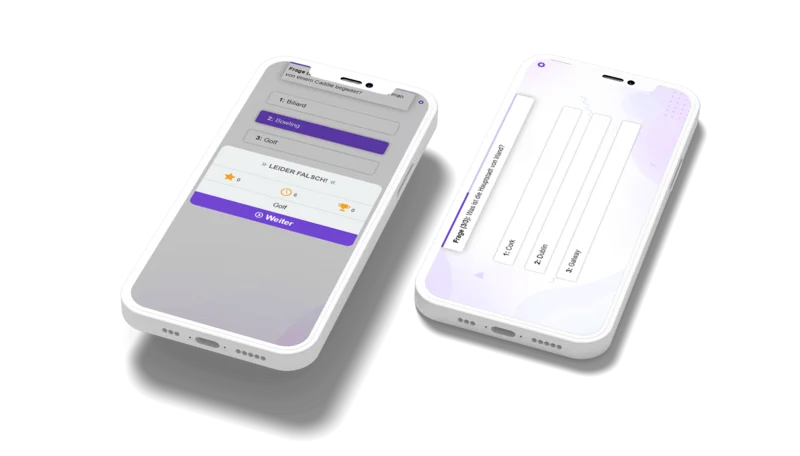 Abhängig von dem gebuchten Paket, passen wir unsere responsiven Miet-Onlinespiele deinen Bedürfnissen an. Wir integrieren dein Logo, passen Farben und Sounds an und können sogar komplett neue Spielfiguren und Skins für dich kreieren. So wird deine eigene Spiel-Story und individuelle Botschaft vermittelt. Außerdem sind unsere Spielmechaniken absolut flexibel. So können wir z.B. Schwierigkeitsgrad oder die Punktevergabe problemlos für dich anpassen. Außerdem richten wir natürlich ein Teilnahmeformular zur Lead-Generierung nach deinen Wünschen ein.