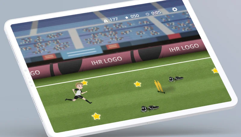 Endless Runner Fußball ist ein HTML5-Game, das auf Smartphones, Tablets und Desktop-Rechnern flüssig läuft. Du kannst das Spiel direkt auf deiner Webseite, Landingpage, bei Aktionen, Social-Media-Kampagnen oder Events einbinden. Durch Anpassung von Farben, Grafiken oder Logos lässt sich Endless Runner Fußball optimal an dein Branding anpassen und als interaktive Fußball-Erfahrung nutzen.