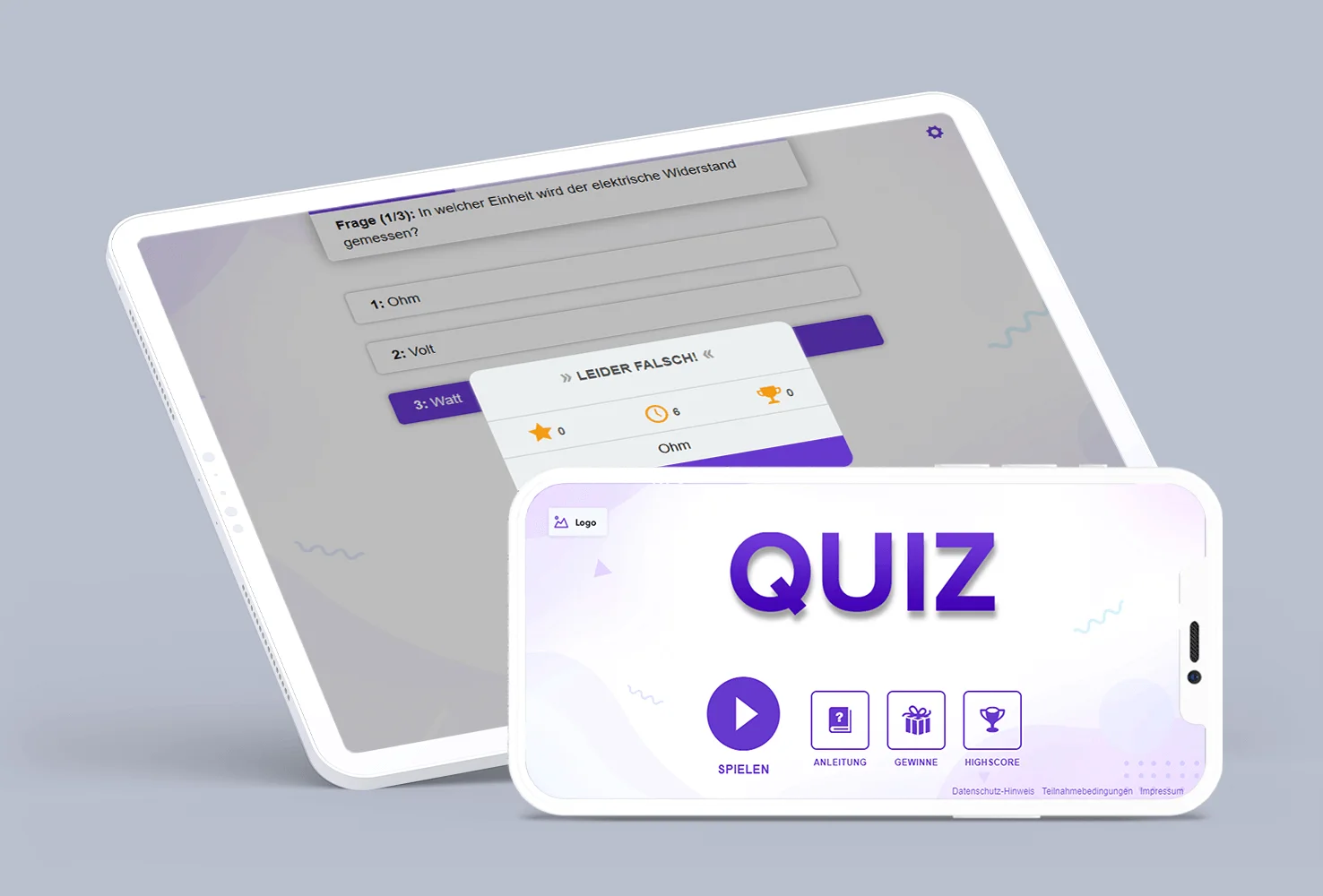 Abhängig von dem gebuchten Paket, passen wir unsere responsiven Miet-Onlinespiele deinen Bedürfnissen an. Wir integrieren dein Logo, passen Farben und Sounds an und können sogar komplett neue Spielfiguren und Skins für dich kreieren. So wird deine eigene Spiel-Story und individuelle Botschaft vermittelt. Außerdem sind unsere Spielmechaniken absolut flexibel. So können wir z.B. Schwierigkeitsgrad oder die Punktevergabe problemlos für dich anpassen. Außerdem richten wir natürlich ein Teilnahmeformular zur Lead-Generierung nach deinen Wünschen ein.