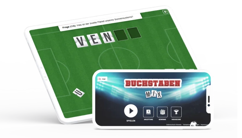 Fußball-Buchstabenmix ist ein browserbasiertes HTML5-Spiel, das auf Smartphone, Tablet und Desktop genauso gut funktioniert. Du kannst es ganz einfach auf deiner Website, Landingpage, in Promotions oder Social-Media-Kampagnen einbauen. Mit individuellen Fragestellungen, passenden Fußball-Begriffen und deinem Design lässt sich das Spiel optimal an deine Marke oder Aktion anpassen. So erzeugst du Aufmerksamkeit und motivierst Nutzer zur Teilnahme — spielerisch und thematisch passend.
