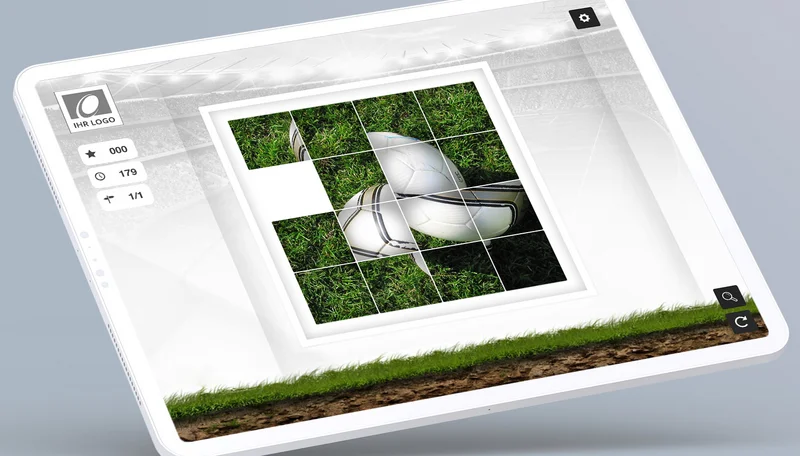Schiebepuzzle Fußball ist ein HTML5-Puzzle, das auf Smartphones, Tablets und Desktop–Geräten direkt im Browser spielbar ist. Du kannst das Spiel einfach auf Webseiten, Landingpages, in Promotions oder Social-Media-Kampagnen einbinden. Mit eigenen Bildern, Farben oder Branding-Elementen lässt sich das Spiel individuell an dein Corporate Design anpassen. So machst du dein Fußball-Thema interaktiv und attraktiv für deine Zielgruppe.